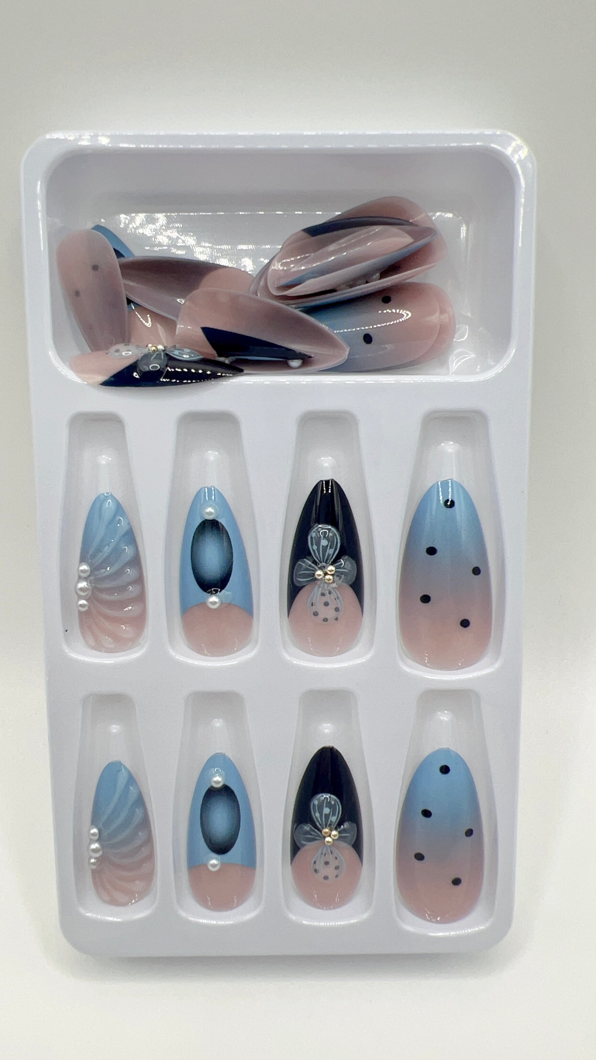 Bring elegance and charm to your nails with these 24 pcs Almond Press-On Nails π . Featuring a stunning blue gradient French tip with delicate flower details, these nails offer a soft and stylish look perfect for any occasion.