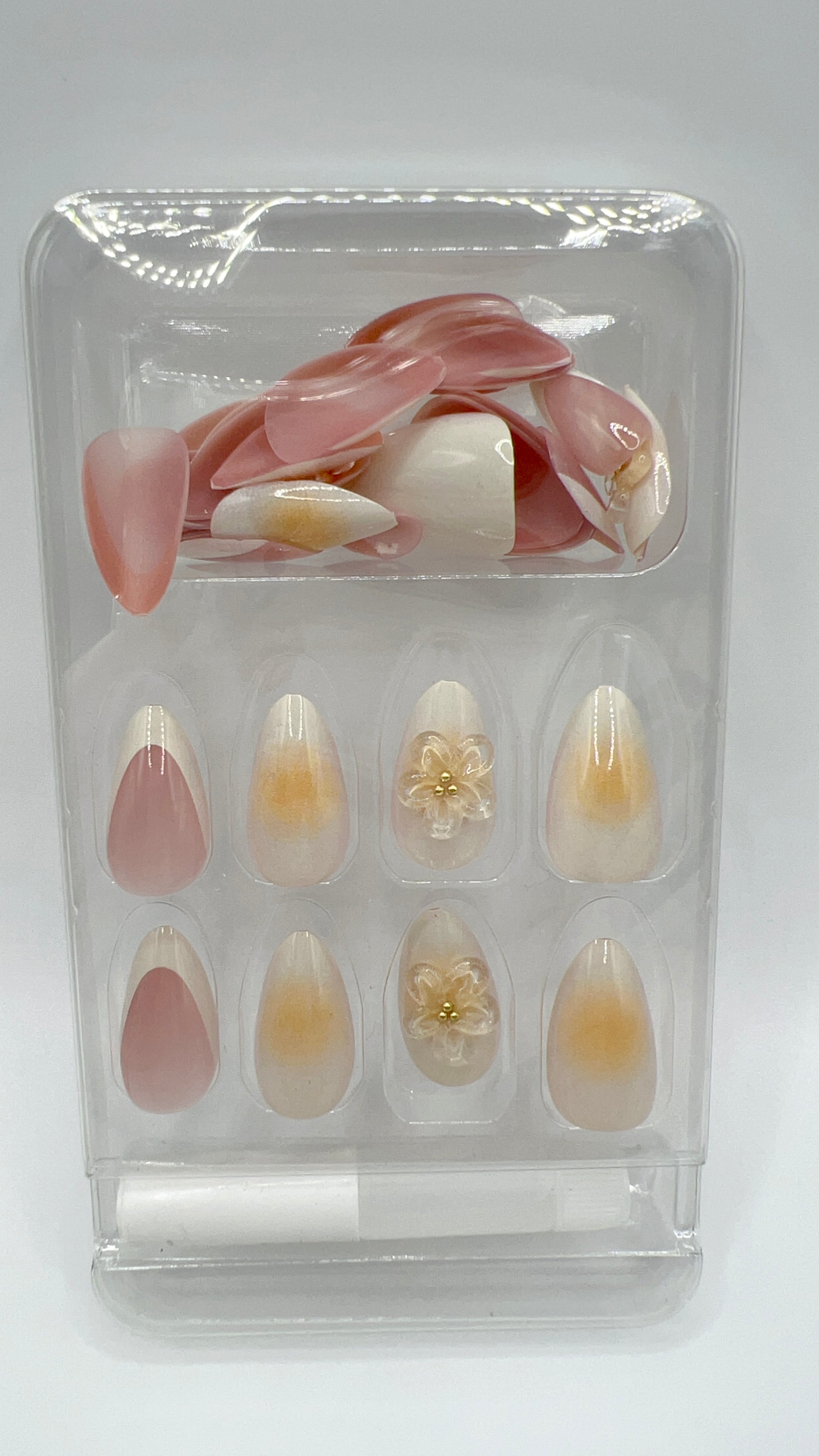 Add a touch of elegance to your nails with these 24 pcs Almond Press-On Nails ๐ผ. Featuring a delicate flower design over a soft yellow gradient, these nails offer a bright yet sophisticated look, perfect for daily wear, parties, or special occasions.