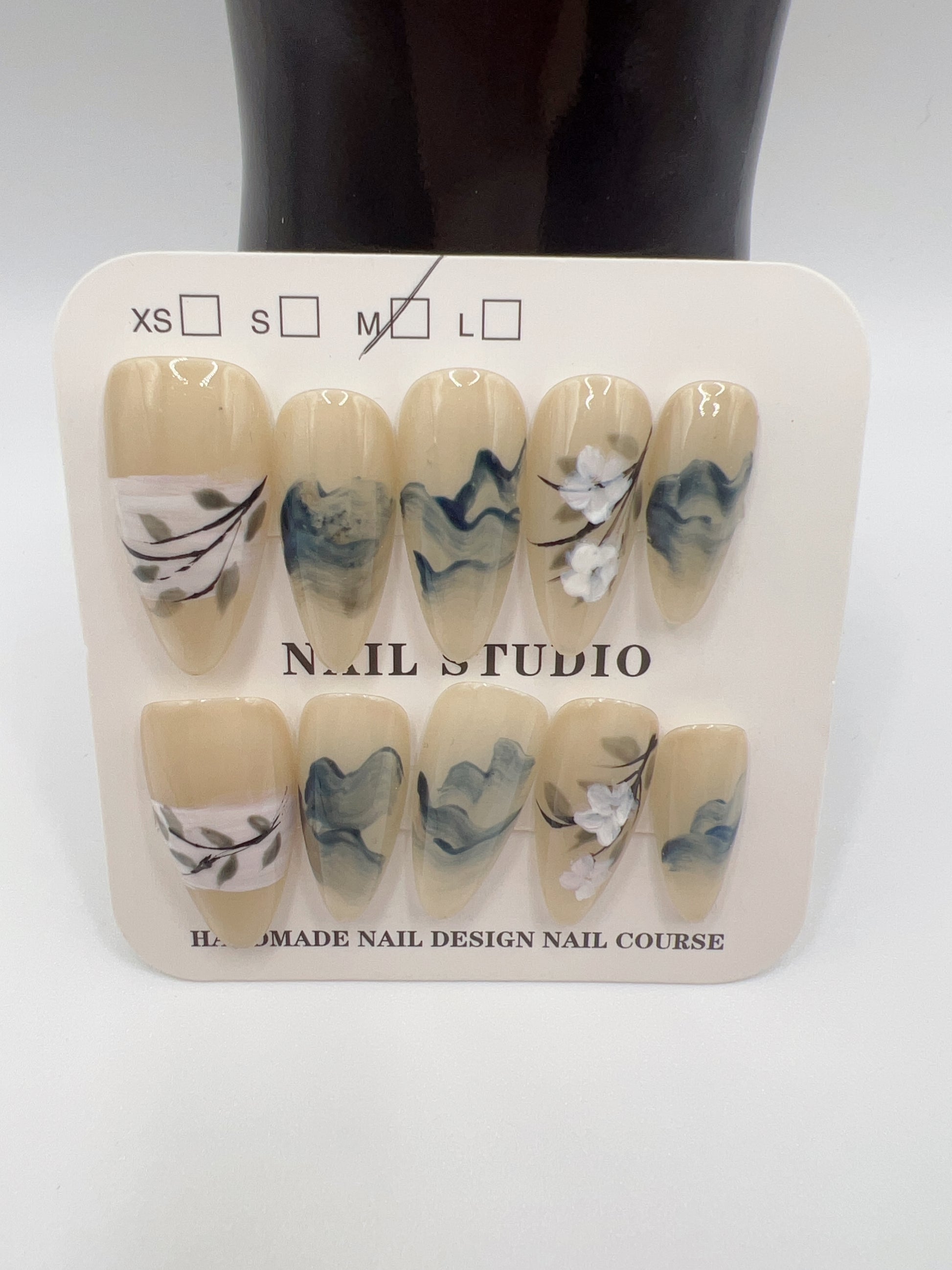 Almond Hand-Painted Watercolor Press-On Nails ā 6 Designs, Medium Size