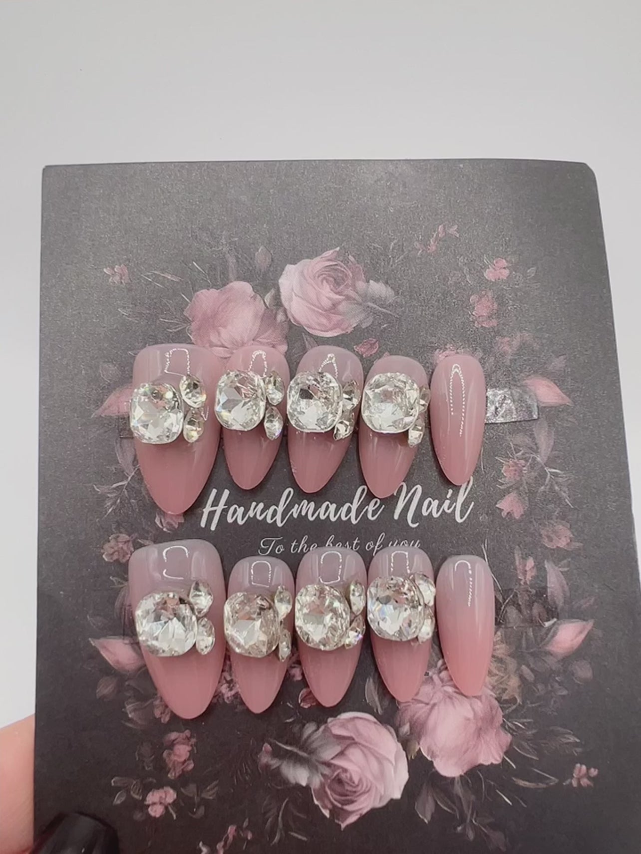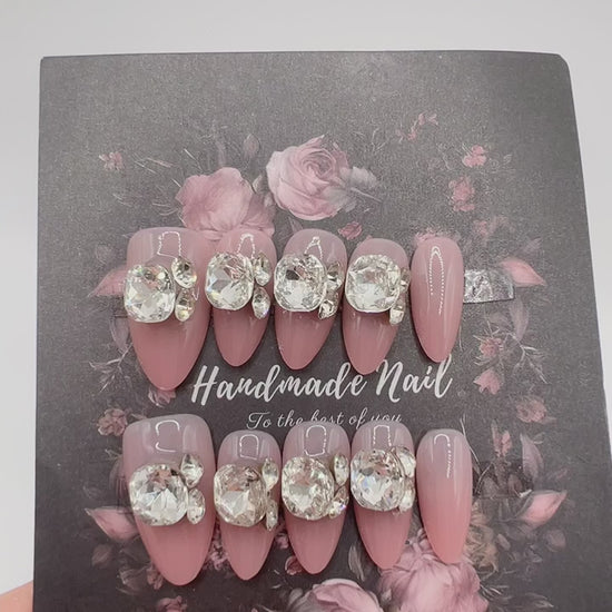Almond Press-On Nails with Elegant Charms β Medium Size
