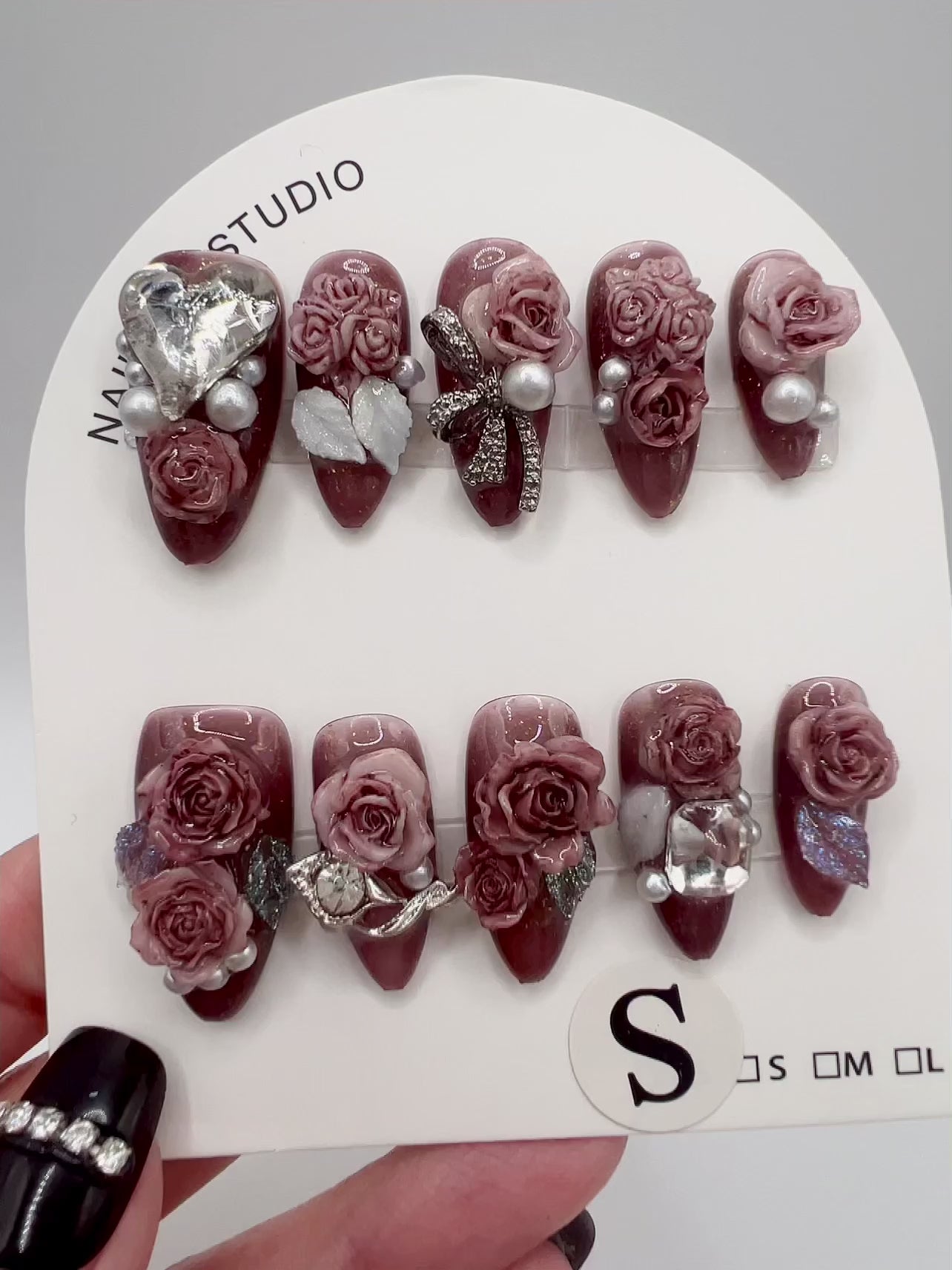 Featuring sparkling rhinestones and delicate 2D flower accents, this small-size set delivers a chic and elegant manicure perfect for everyday wear or special occasions.