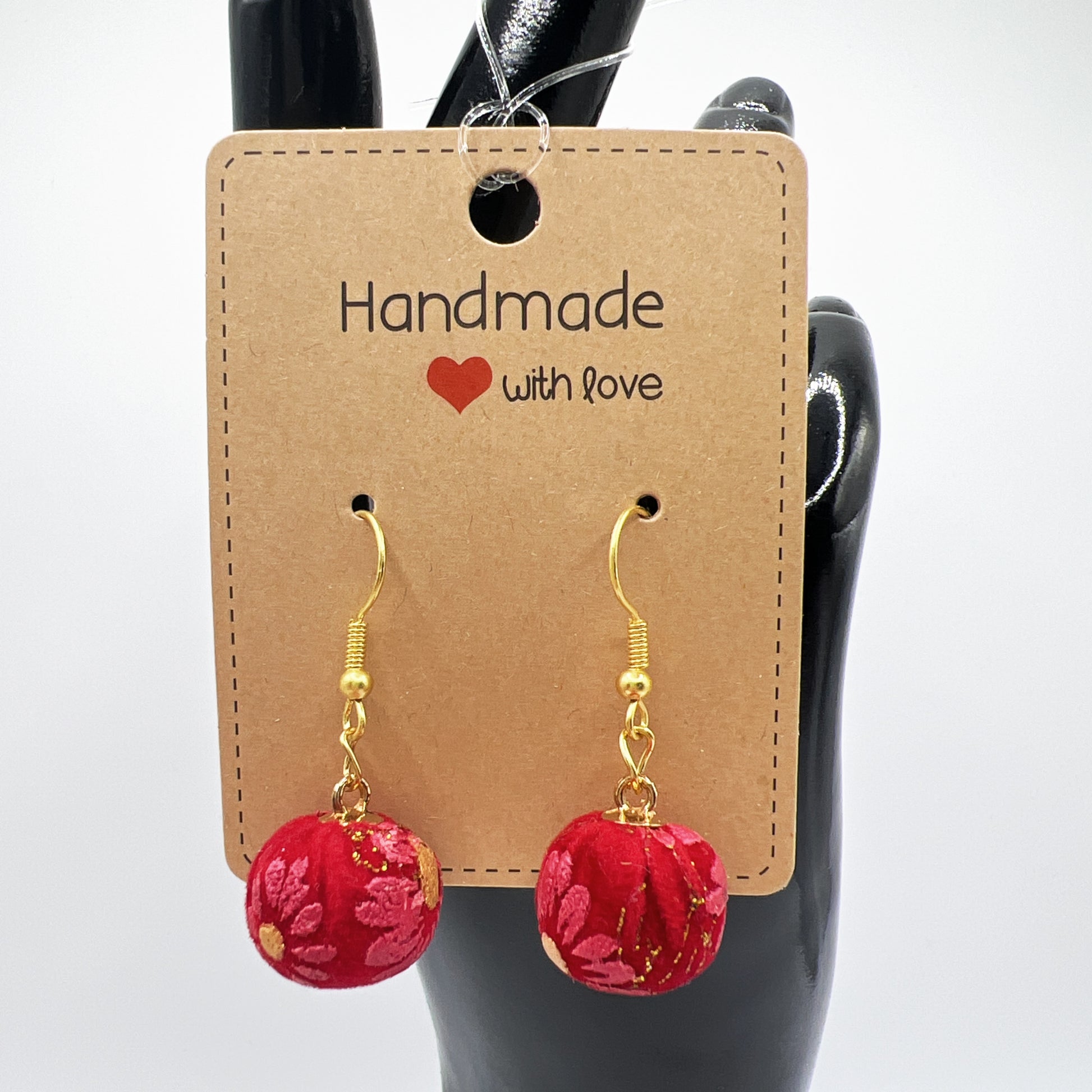 #FabricEarrings #FlowerBallEarrings #LightweightStyle #RedAndBlack #ElegantChic