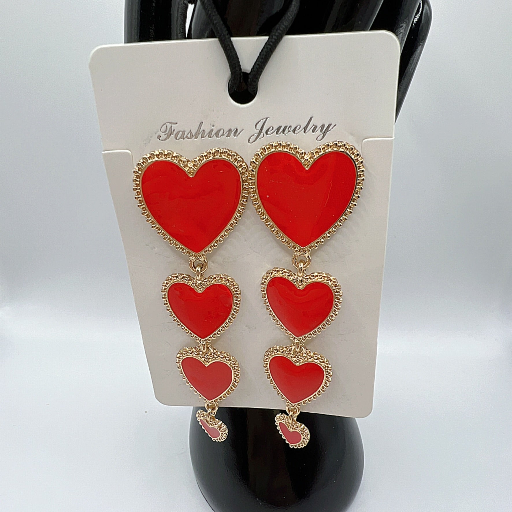 Add a touch of romance and elegance with these stunning triple heart earrings. Crafted in a shiny gold finish, each earring features four connected hearts for a playful yet sophisticated look. Lightweight and comfortable, theyβre perfect for daily wear or special occasions.