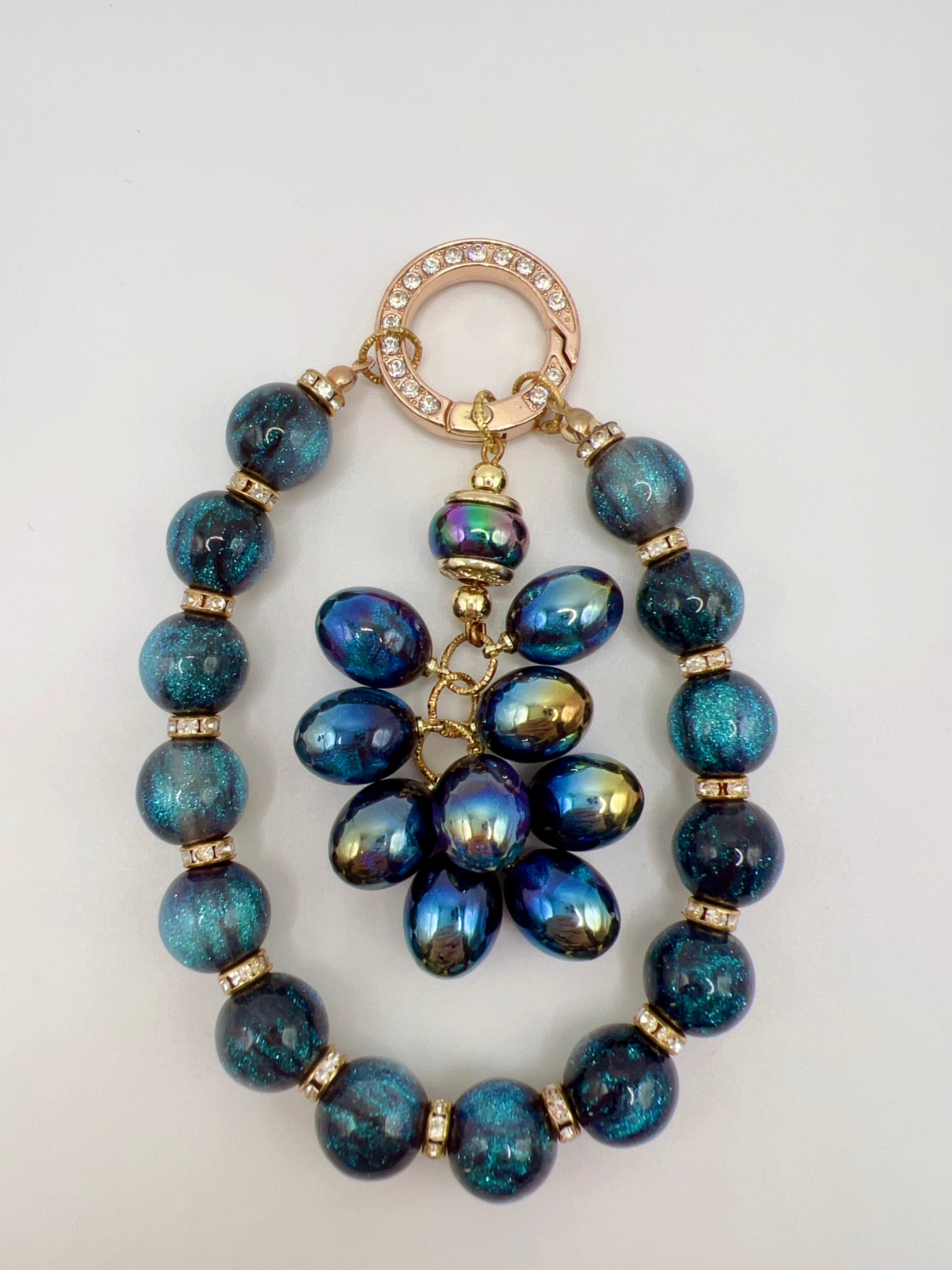Handmade Blue Shimmer Beaded Keychain/Bag Chain/Phone Chain