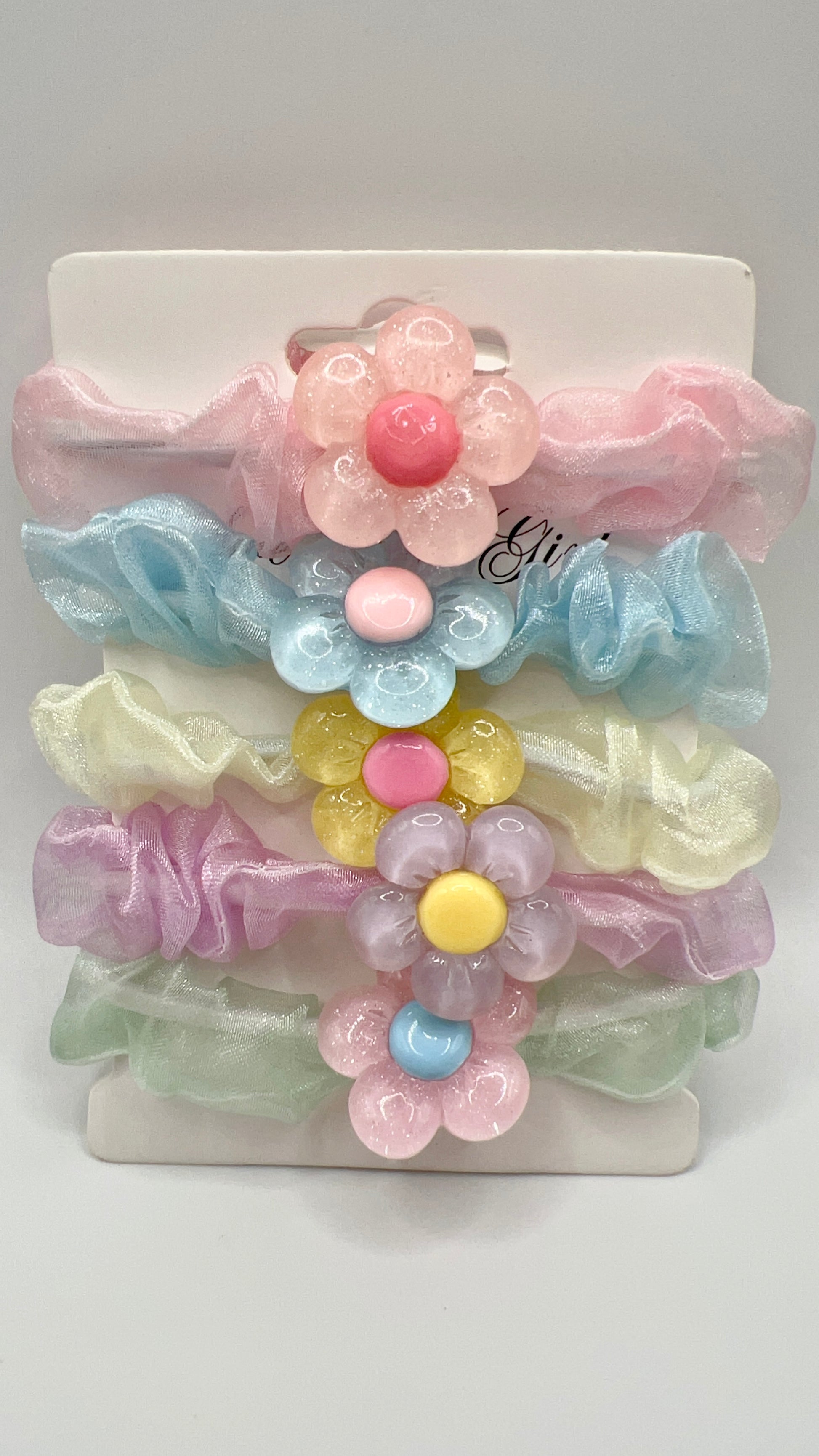 Handmade Colorful Flower Hair Tie Set β 5pcs, Cute for Girls & Gift
