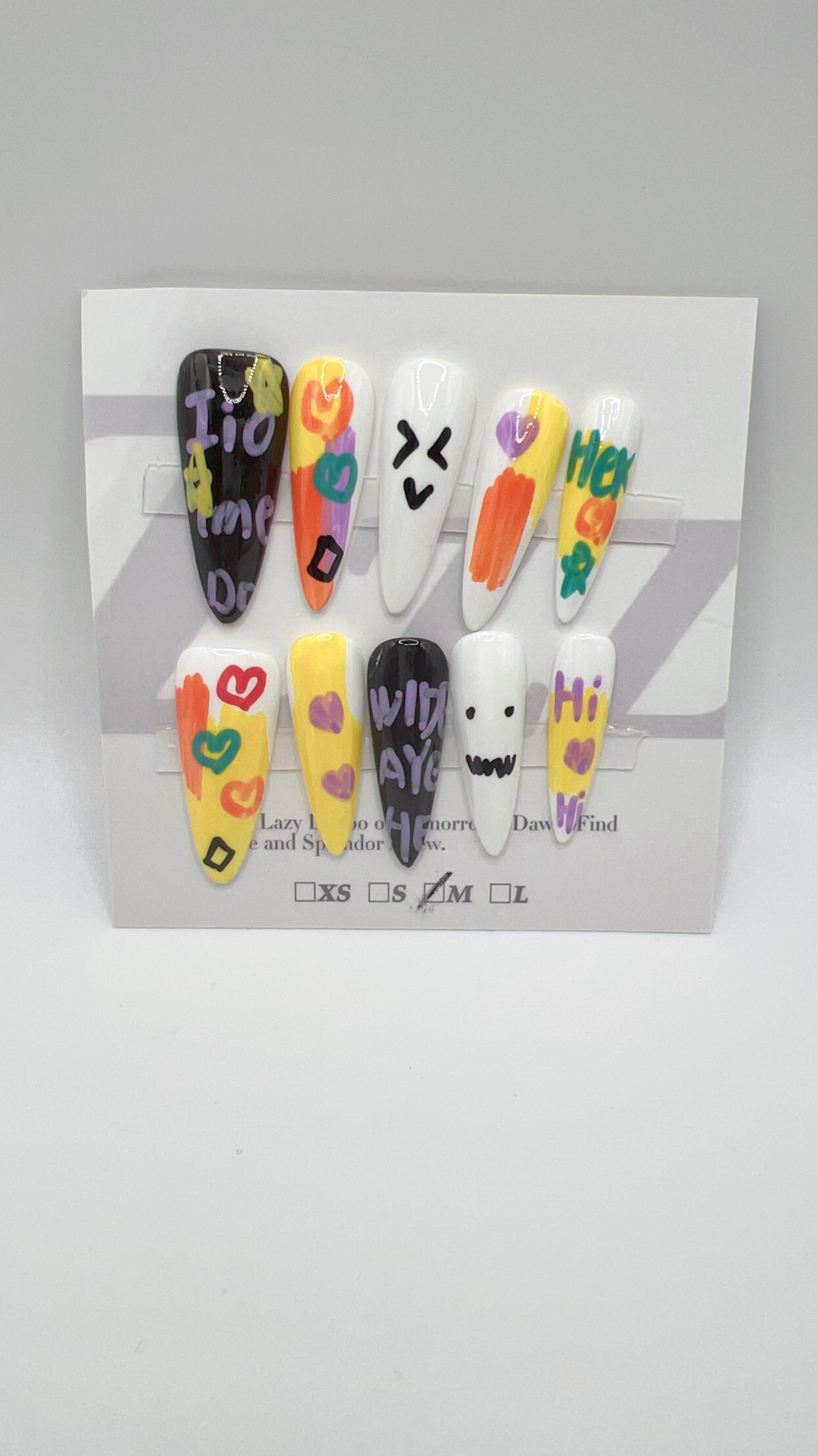 Get spooky-chic nails in minutes with these Long Stiletto Press-On Nails 🎃✨. Designed with a unique hand-painted Halloween style, these nails are perfect for costumes, parties, or adding a bold seasonal vibe to your everyday look. Measuring 30–32mm in length with a medium size fit, they’re glamorous, durable, and easy to apply.