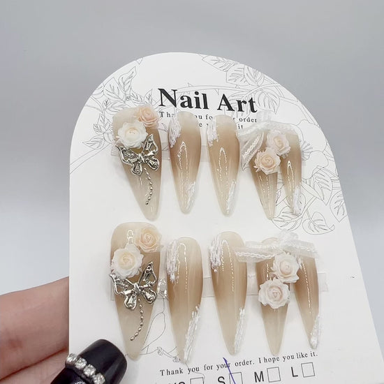 Long Stiletto Press On Nails with 2D Flowers β Small Size