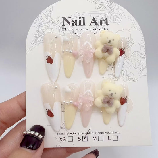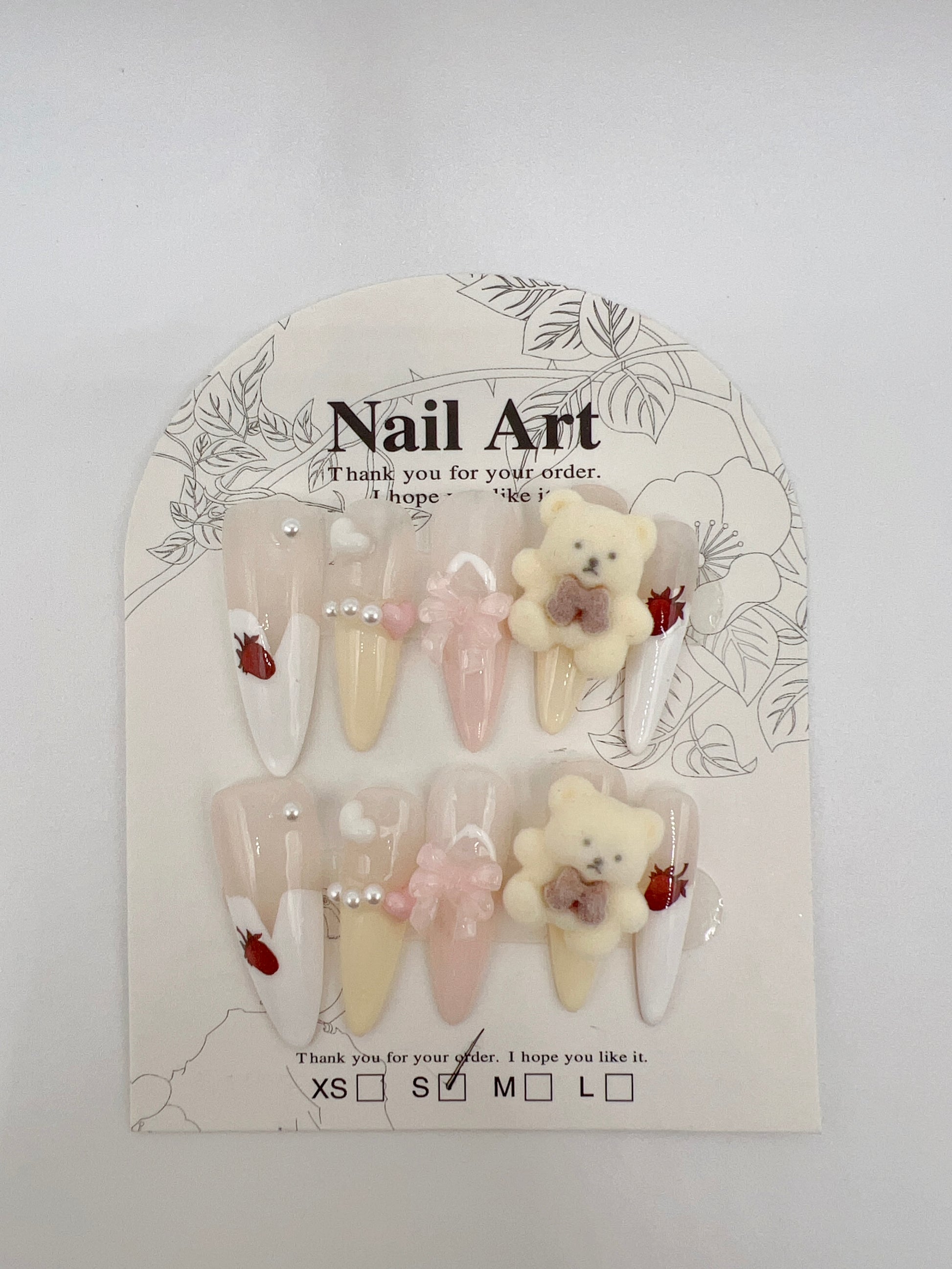 Designed for a luxurious, elegant look, these nails combine sparkle and delicate beauty—perfect for parties, weddings, or daily chic wear.