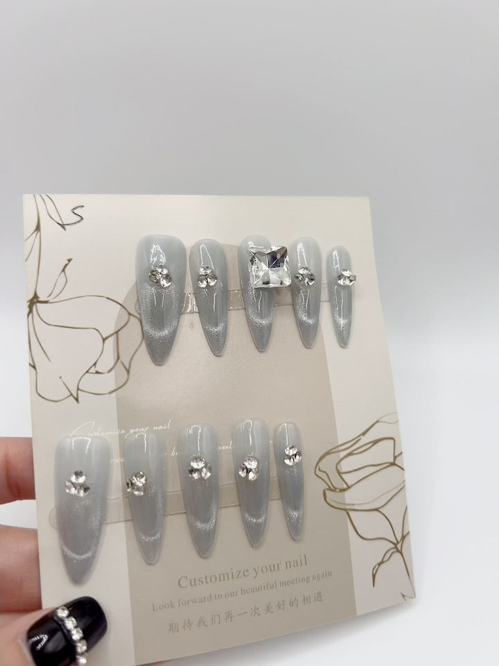 Designed for a luxurious, elegant look, these nails combine sparkle and delicate beauty—perfect for parties, weddings, or daily chic wear.
