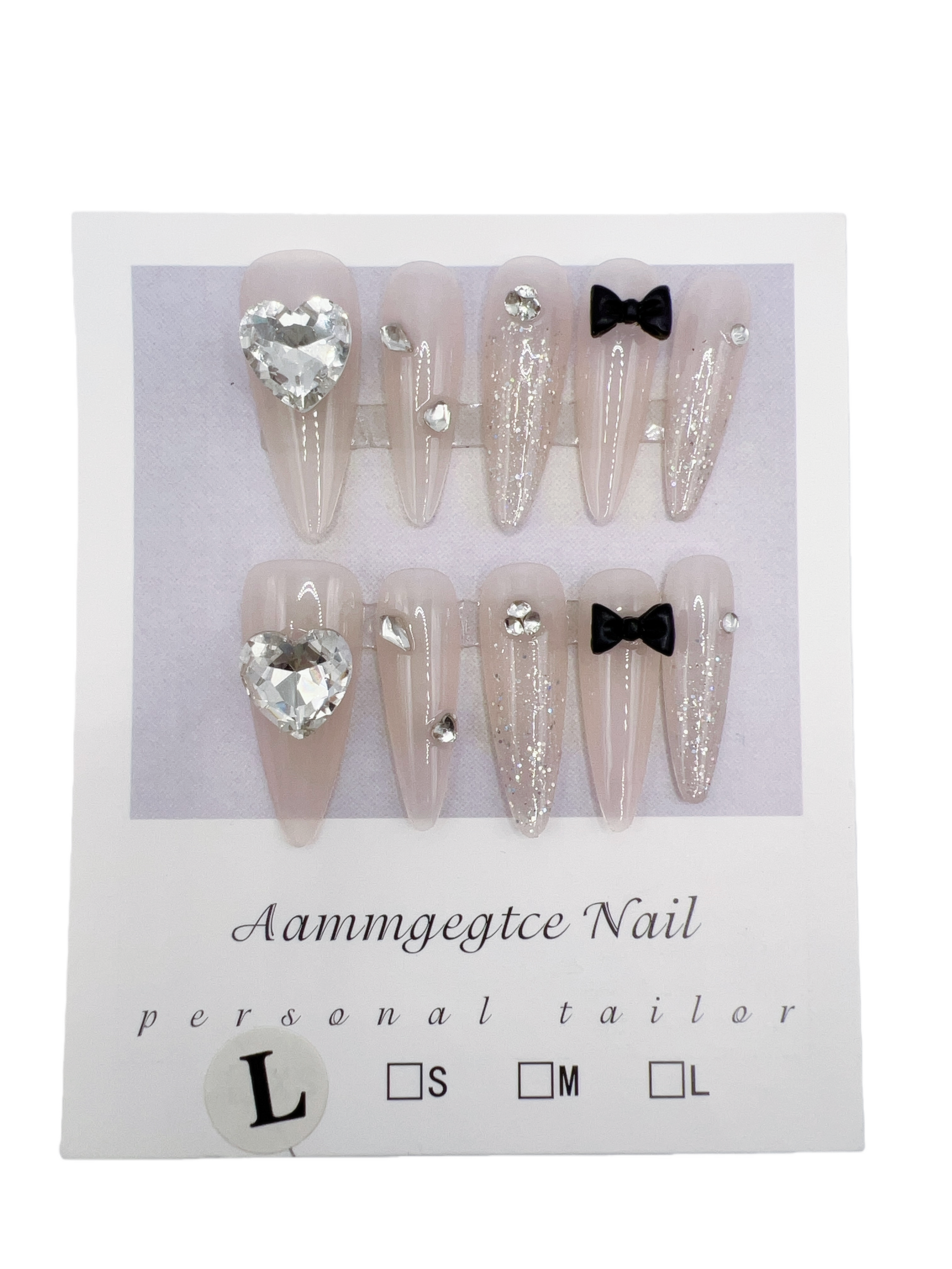 Long Stiletto Press-On Nails with Rhinestone Charms β Large Size