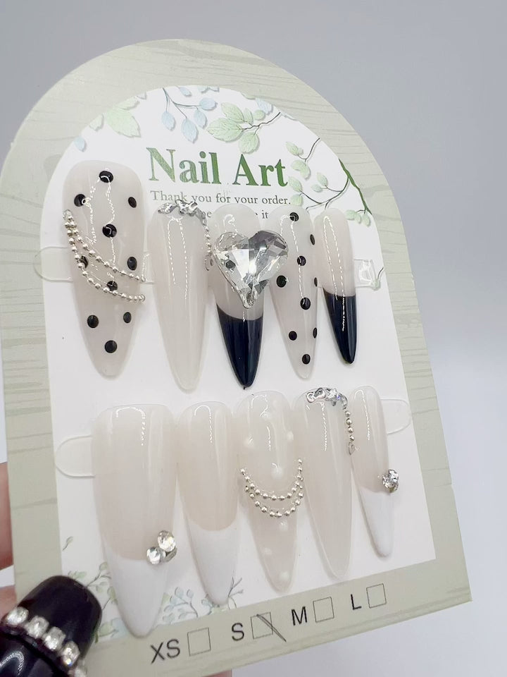 Long Stiletto Press On Nails with Rhinestone & French Style – Small Size