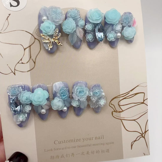 πΈ Design: Almond shape with rhinestones & 2D flower charms