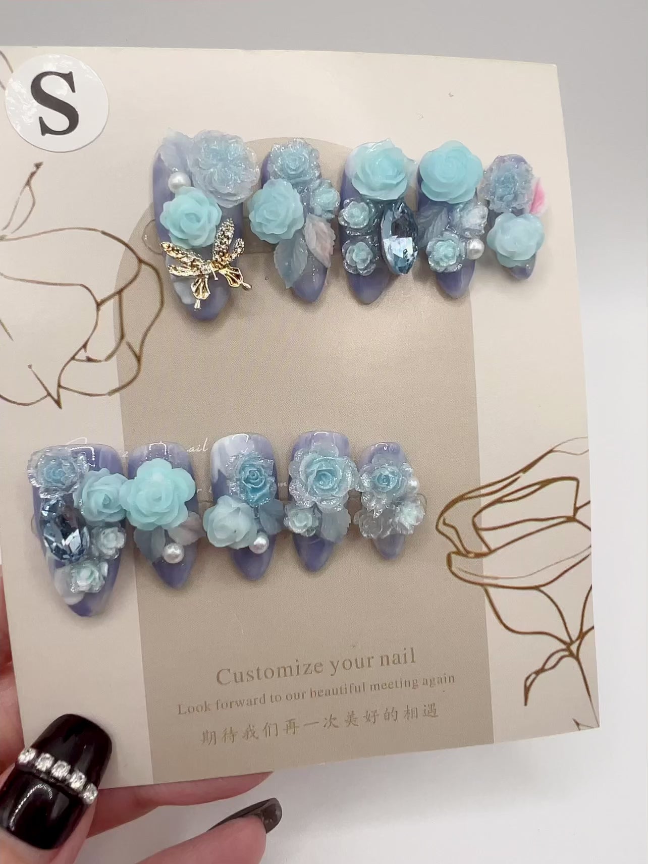 π Luxury Almond Press-On Nails β Small Size β Elevate your nail style with these small-size almond-shaped nails measuring approximately 25mm in length. Adorned with sparkling heavy rhinestones and 2D flower charms, these nails are perfect for everyday elegance, special events, or DIY nail art.