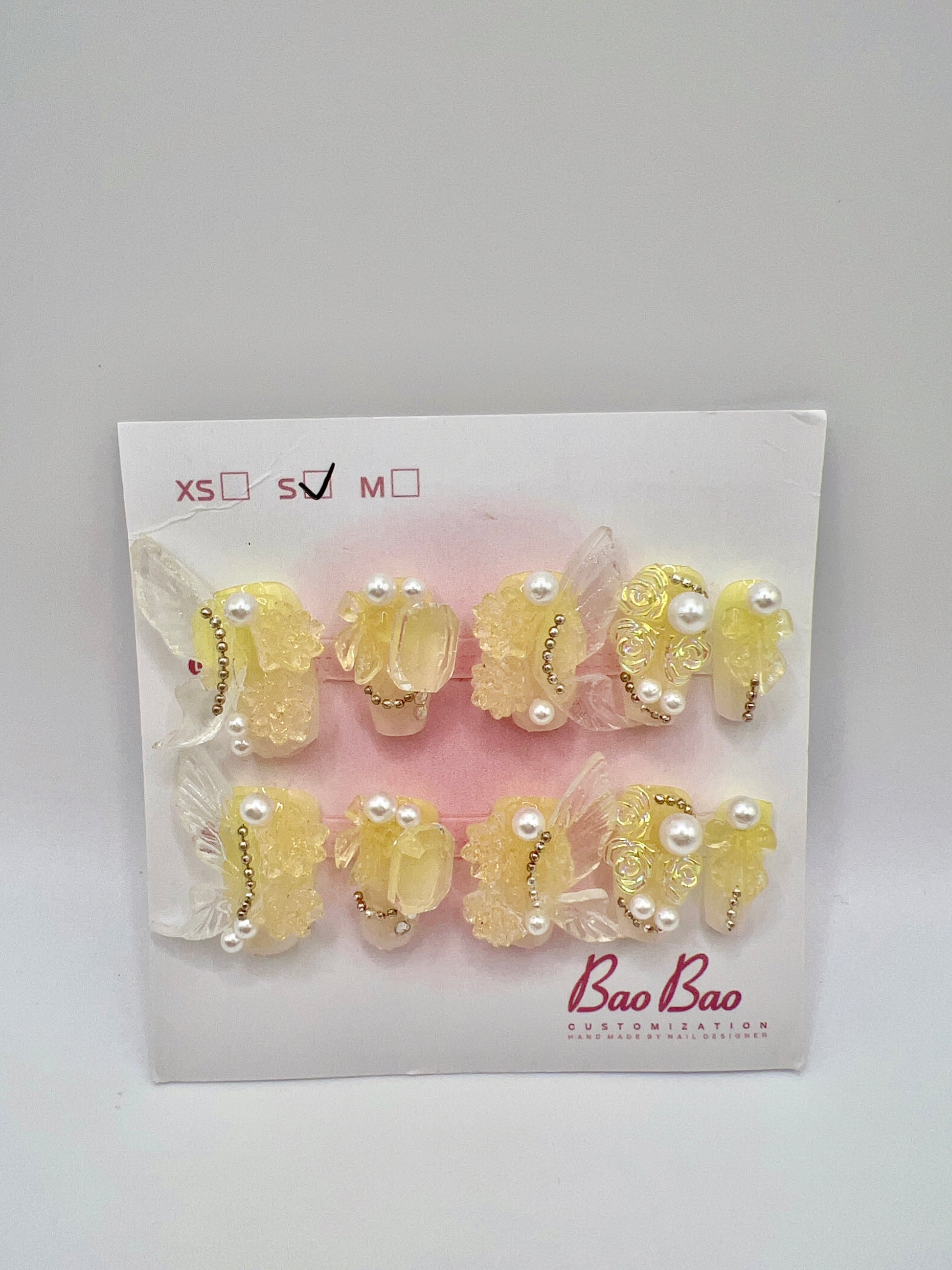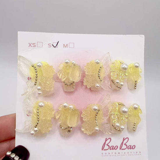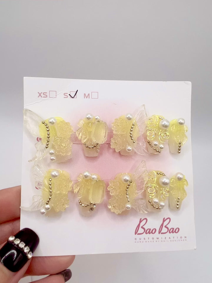 Featuring 2D flower and pearl charms, this elegant nail set combines a cheerful color with a sophisticated touch. Perfect for any occasion β from daily wear to parties β these small size nails offer a comfortable fit and salon-quality shine youβll love.