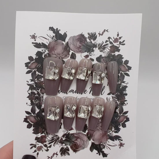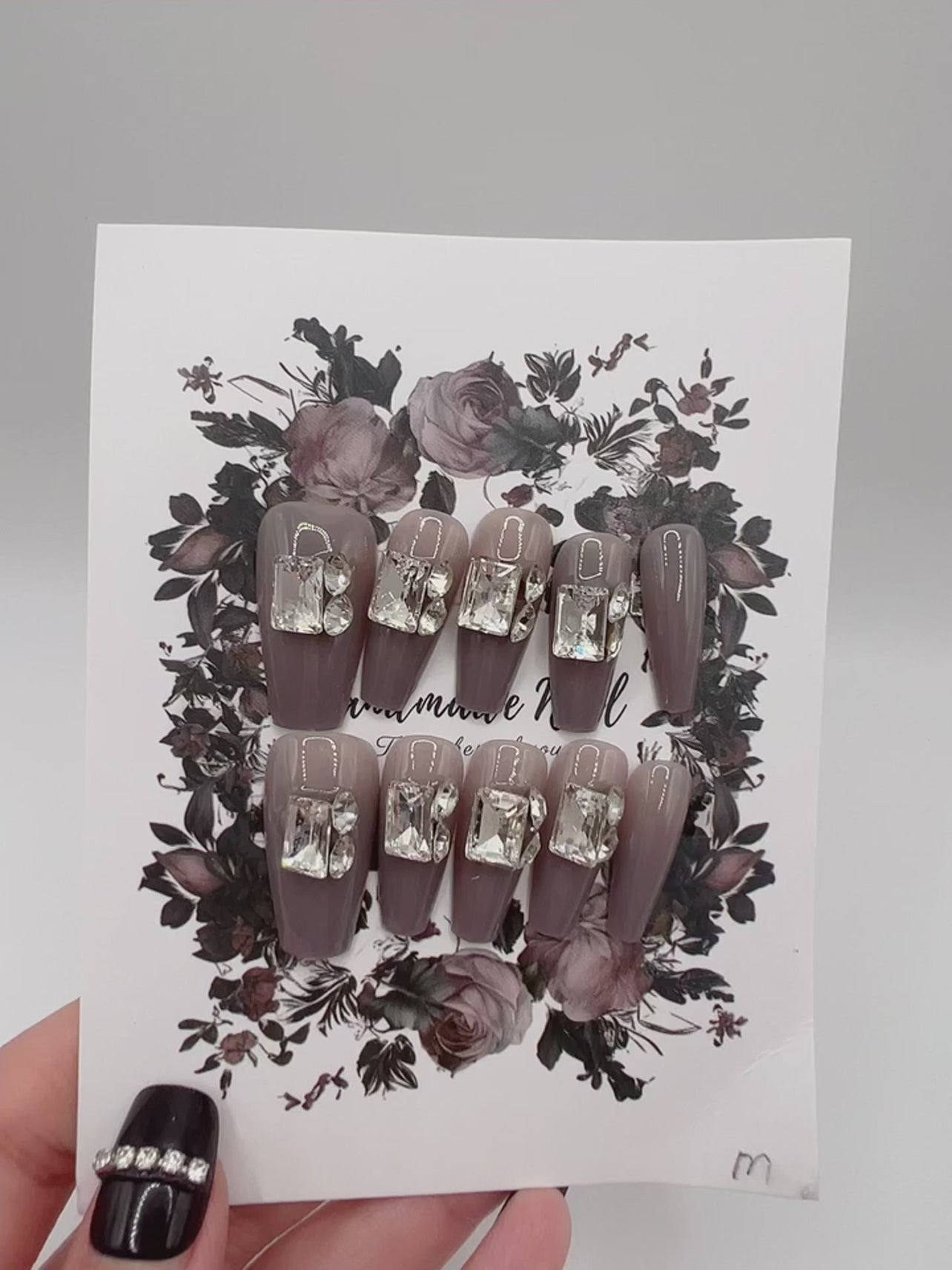 Medium Coffin Press-On Nails with Rhinestone β Elegant Medium Size