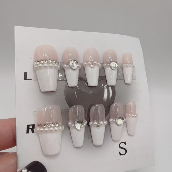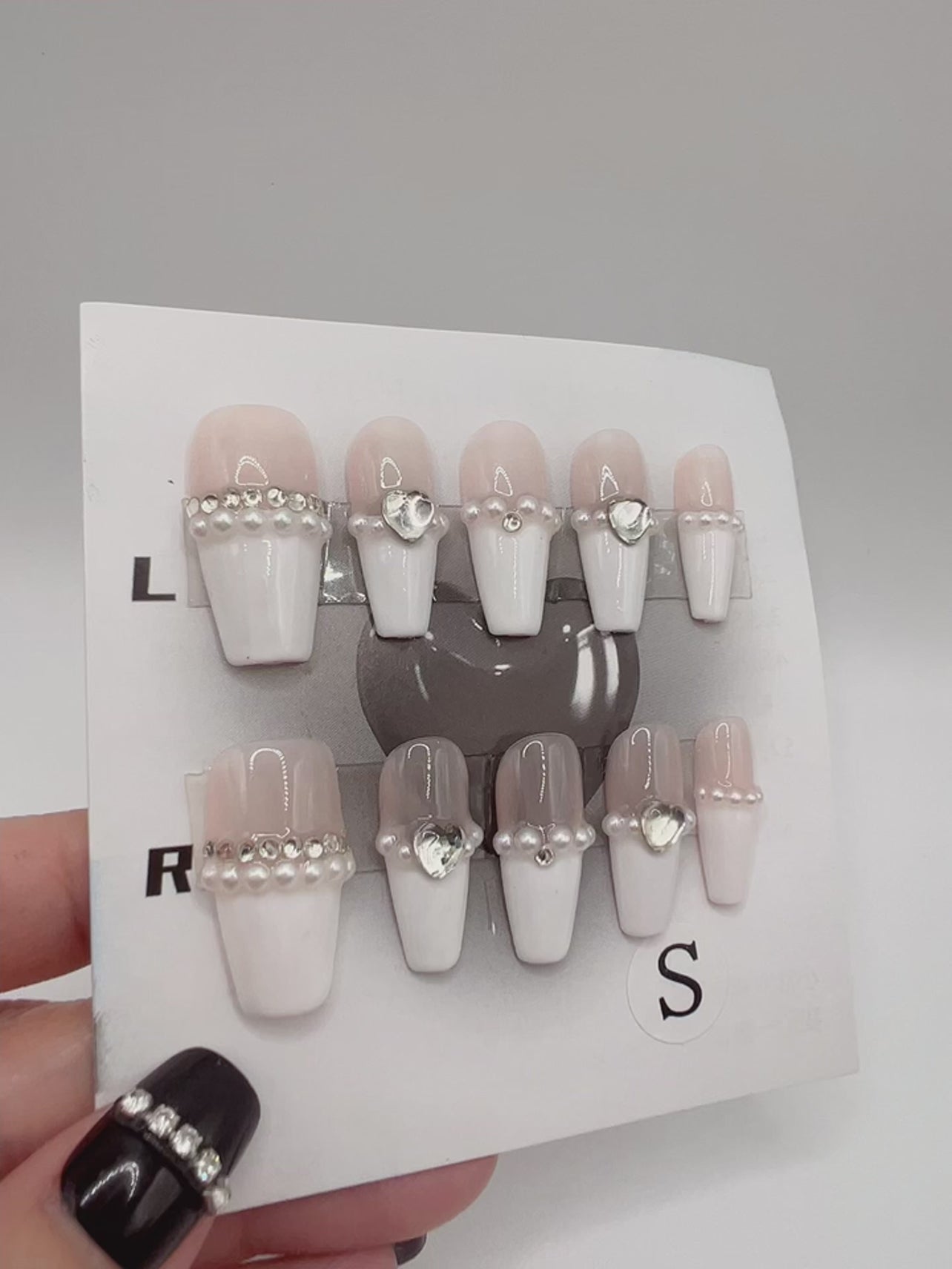 Featuring a classic French tip adorned with sparkling rhinestones, this small-size set provides a chic and polished look perfect for any occasion.