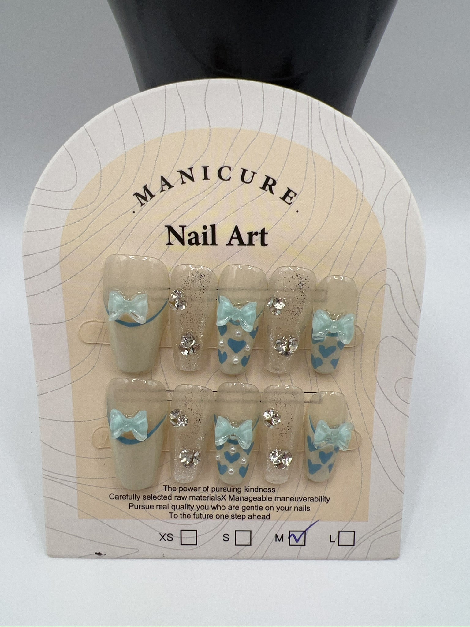 Medium Length Coffin Press On Nails with Rhinestone Charms ā 8 Designs, Medium Size