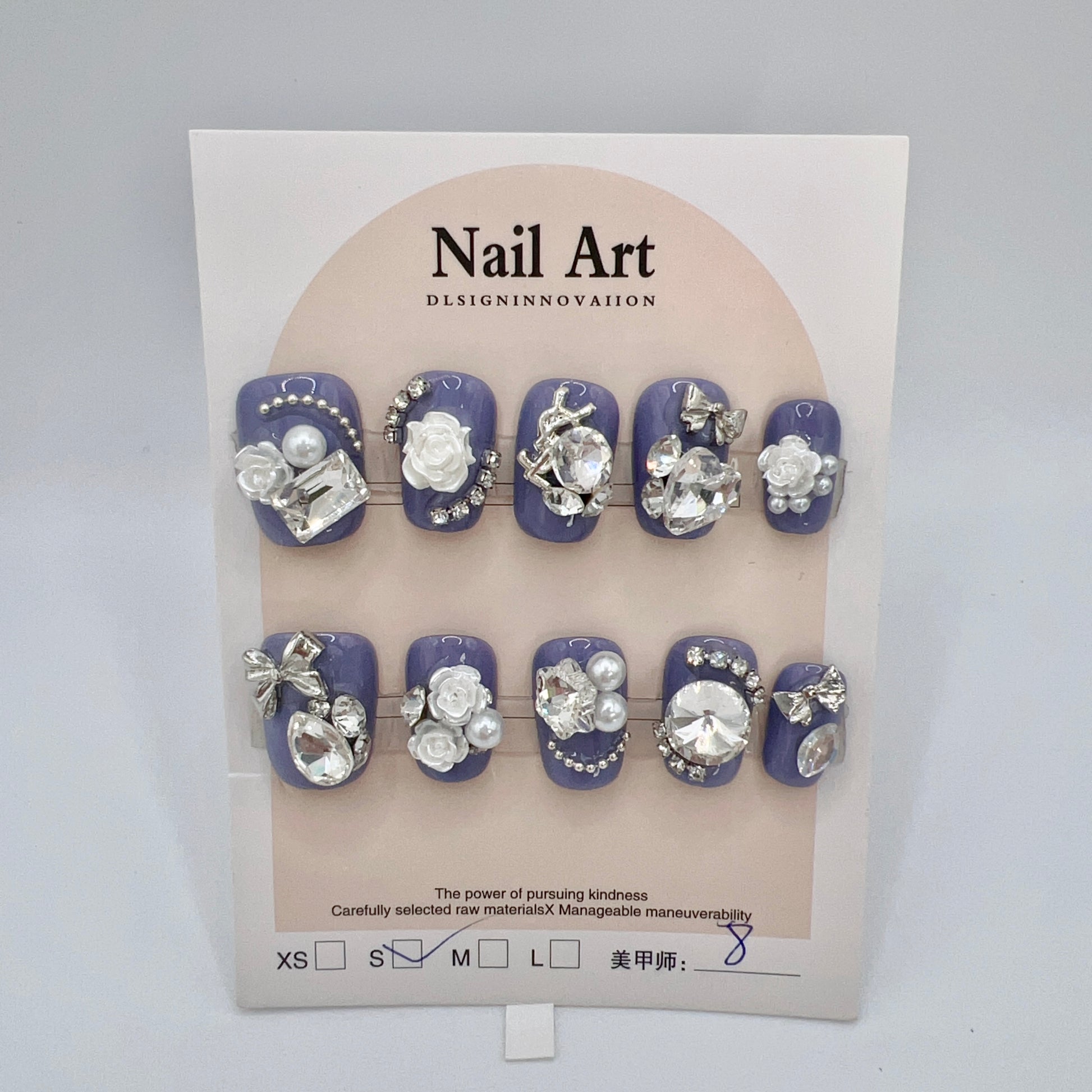 Add sparkle and elegance to your nails with these short square press-on nails π β¨, adorned with heavy rhinestones π and delicate 2D flower charms πΈ. Designed in small size, they are comfortable to wear while giving you a glamorous, salon-quality look. Perfect for weddings, parties, or daily glam, these nails combine sophistication with creative charm.