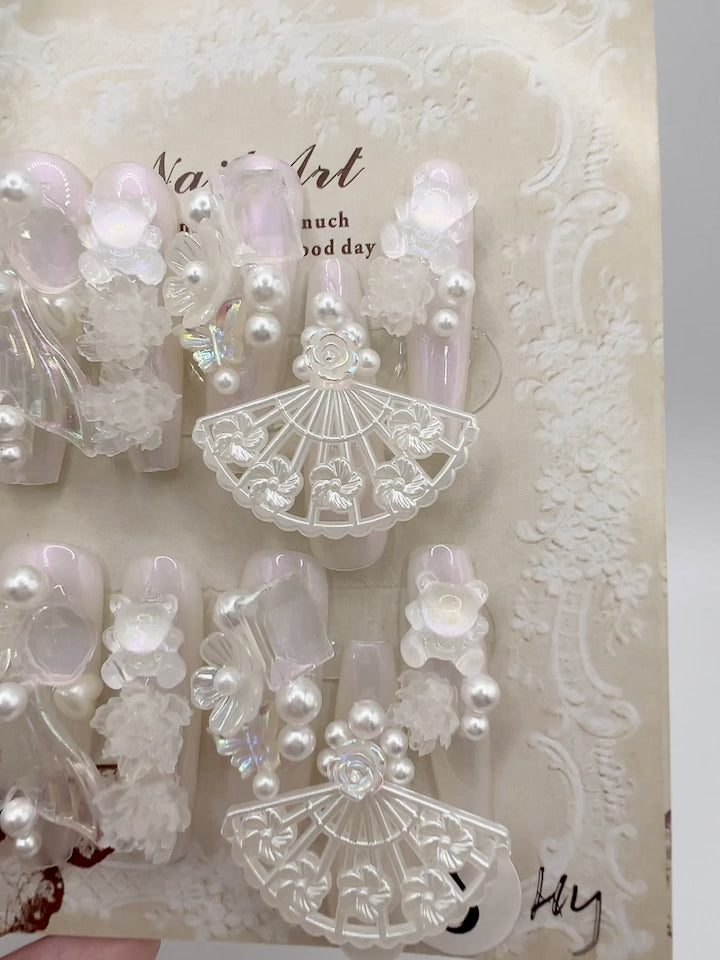 Adorned with luxury 2D flower charms, this set adds a sophisticated and artistic touch to your manicure. Designed in a small size for a perfect fit, these nails offer a comfortable, salon-quality look thatโs ideal for parties, dates, or everyday wear.